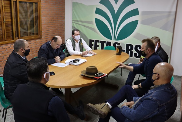 O deputado estadual Elton Weber (PSB) esteve reunido com representantes da Federação dos Trabalhadores na Agricultura no Rio Grande do Sul (Fetag/RS) e de outras entidades, nesta quarta-feira (30), na sede da Federação, no Parque de Exposições Assis Brasil, em Esteio. Em pauta, o Projeto de Lei Nº 159/2020 do Poder Executivo que estabelece requisitos e limites para a produção e comercialização da cachaça artesanal gaúcha, define diretrizes para o registro e a fiscalização do produtor e cria o Selo da Cachaça Artesanal Gaúcha e o Selo de Revenda da Cachaça Artesanal Gaúcha.